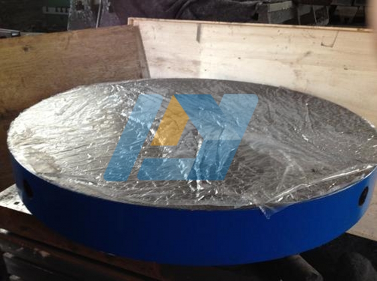 材料為鑄鐵HT20-40,工作面硬度為HB770-240。經(jīng)過兩次處理(人工退火600°-700°和自然時(shí)效2-8年),使該產(chǎn)品的精度穩(wěn)定,不易磨損性能好。圓形平板(平臺(tái))可用涂色法檢驗(yàn)零件平面度,具有準(zhǔn)確、直觀、方便的優(yōu)點(diǎn)。