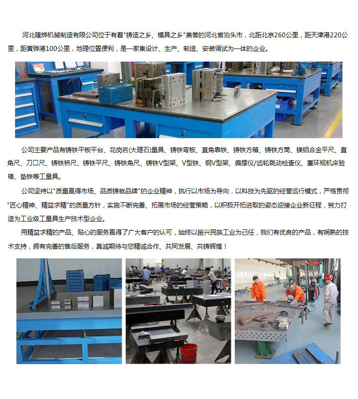 3、具體適用于用于機(jī)械、發(fā)動(dòng)機(jī)的動(dòng)力實(shí)驗(yàn),設(shè)備調(diào)試,具有較好的平面穩(wěn)定性和韌性,表面帶有T型槽,可以用來(lái)固定實(shí)驗(yàn)設(shè)備;同時(shí)適用于各種產(chǎn)品的檢驗(yàn)工作,鑄鐵試驗(yàn)平臺(tái)用于檢查零件的尺寸精度或行為偏差,并作劃線試驗(yàn)平臺(tái)在機(jī)械制造中也是的基本工具。